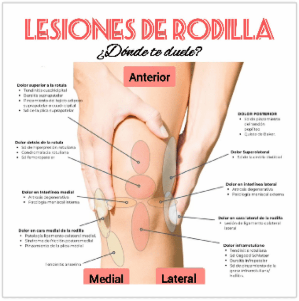 - Dolor debajo de la rótula al caminar, saltar o subir escaleras.